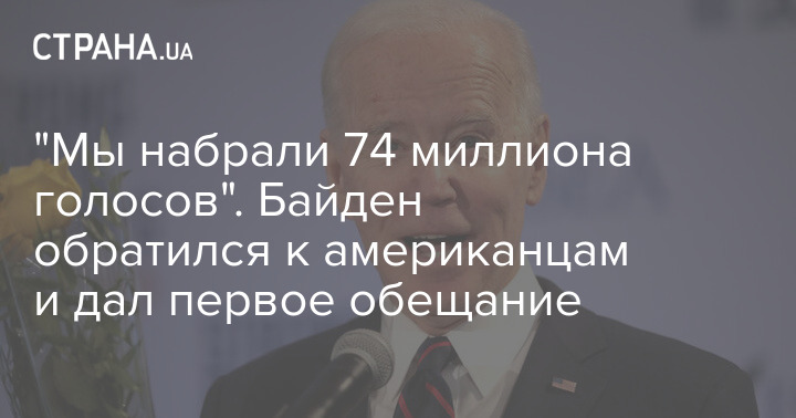 "Мы выиграли выборы с максимальным количеством голосов - 74 миллиона. Я клянусь стать президентом, который будет не разъединять, а объединять", - сказал он.