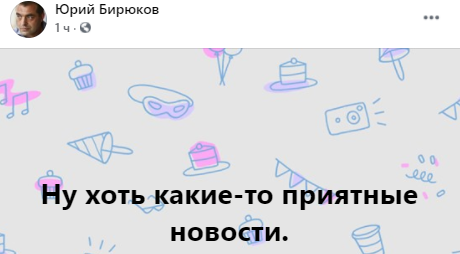"Ну, хоть какие-то приятные новости", - написал экс-работник Минобороны Юрий Бирюков.
