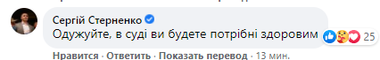Одесский праворадикал Сергей Стерненко пожелал президенту выздоровления, но только ради того, чтобы увидеть его в суде.