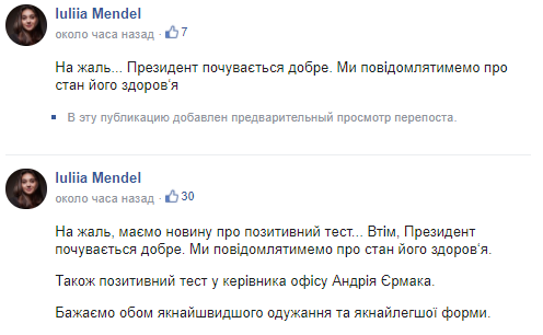 Интересно, что пресс-секретарь Зеленского Юлия Мендель, когда сообщала о болезни президента, написала странную фразу: