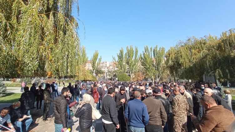 А в самом Ереване в эти минуты около сотни митингующих собрались у здания парламента Армении, недовольные перемирием в Нагорном Карабахе. Из-за этого сотрудники Министерства внутренних дел (МВД) выставили кордон у входа.