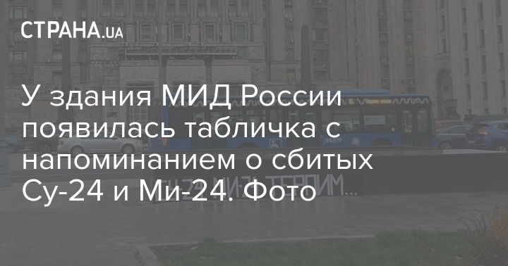 У здания МИД России появилась табличка с напоминанием о сбитых Су-24 и Ми-24. Фото