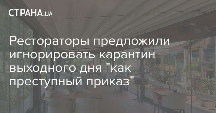 Украинские рестораторы возмущенны введением карантина выходного дня, решение о котором в среду принял Кабмин. Один из сотрудников сферы общепита предложил игнорировать новые режим "как преступный приказ".