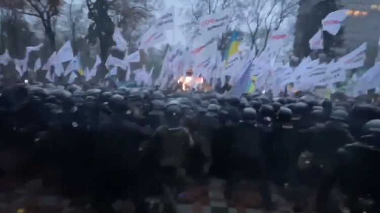 Столкновения протестующих и полиции возле Верховной Рады. Фото: скриншот из видео