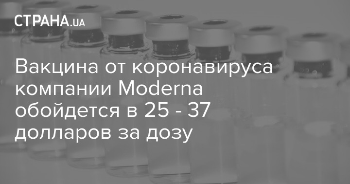 Вакцина от коронавируса компании Moderna обойдется в 25 - 37 долларов за дозу
