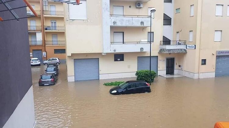 На юге Италии сильное наводнение. Обрушился мост, затопило дороги, авто поплыли. Фото