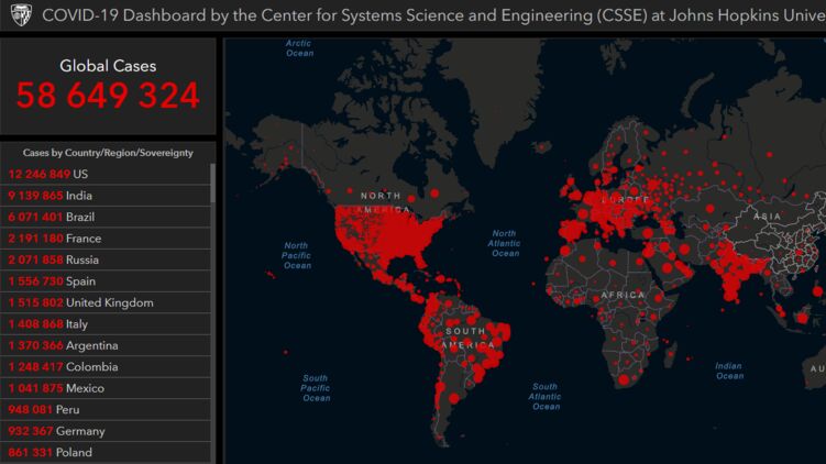 Данные на 23 ноября. Число зараженных на планете приближается к 59 миллионам, фото: arcgis.com