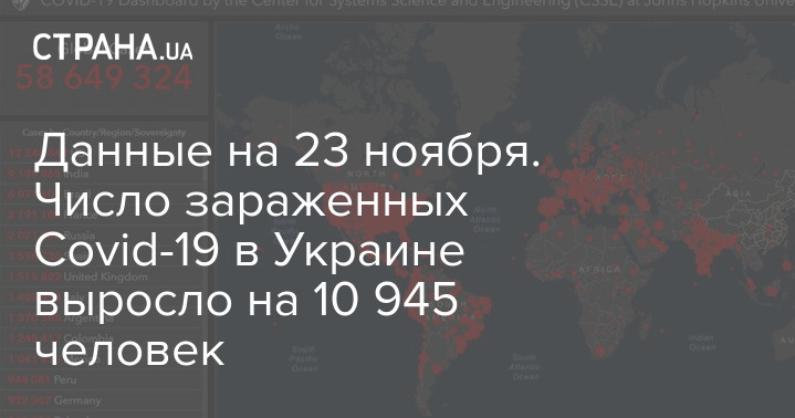 По состоянию на утро понедельника 23 ноября, в Украине подтвердились 10 945 новых случаев заражения коронавирусом. Напомним, что последний антирекорд был отмечен 21 ноября, когда за сутки в стране было выявлено 14 580 зараженных.