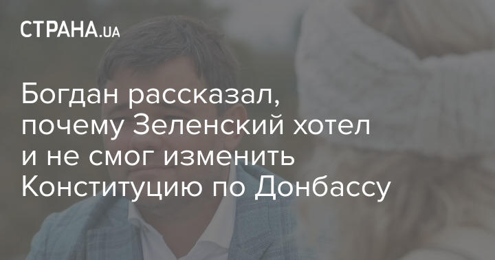 Бывший глава Офиса президента Андрей Богдан рассказал, что у президента Владимира Зеленского было намерение изменить Конституцию страны ради прекращения войны на Донбассе, но сделать это он так и не решился.