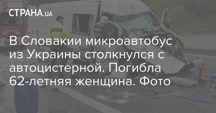 В понедельник, 23 ноября, в Словакии произошло смертельное ДТП, в котором столкнулись микроавтобус из Украины и автоцистерна. В результате аварии погибла 62-летняя женщина, а еще два человека госпитализированы в больницу.