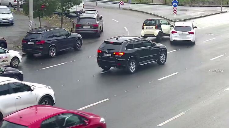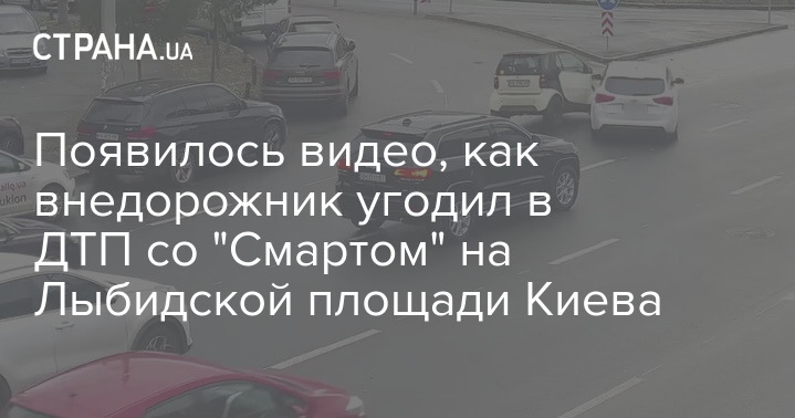 Появилось видео, как внедорожник угодил в ДТП со "Смартом" на Лыбидской площади Киева