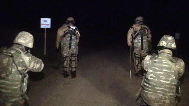 И министерство обороны Азербайджана уже показало в соцсети первые кадры из этого района, взятого ночью под полный контроль. На кадрах, снятых в темное время суток, видно как саперы под прикрытием автоматчиков приступили к разминированию территории.
