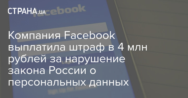 В России компания Facebook выплатила штраф в размере 4 млн рублей (около 1,5 млн гривен - Ред.), наложенный за нарушение закона о персональных данных.