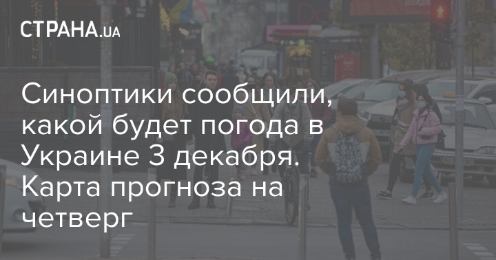 В четверг, 3 декабря, в Украине ожидают облачную погоду. Ночью температура упадет ниже нуля, а в некоторых регионах будет идти мокрый снег.