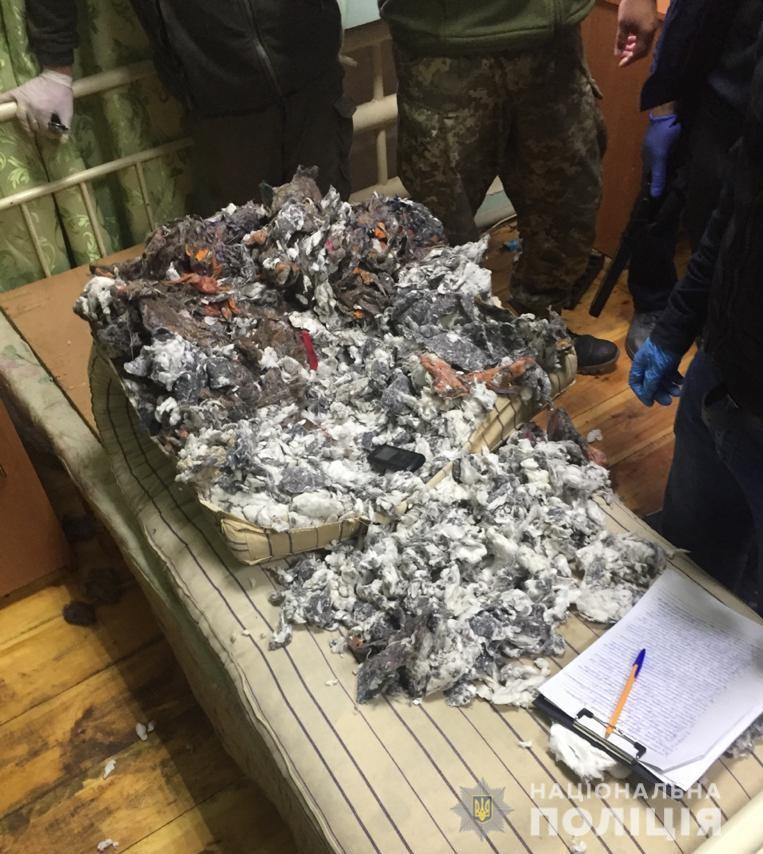 Во время проведения обыска по месту отбывания наказания подозреваемого следователи изъяли сим-карты и мобильные телефоны. На кадрах оперативной съемки видно, что телефонный мошенник хранил сим-карты и телефоны в своем матрасе.