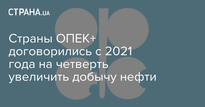 Члены организации стран - экспортеров нефти ОПЕК+ согласовали повышение добычи нефти с января 2021 года на 500 тысяч баррелей в сутки, с дальнейшим ежемесячным пересмотром. Таким образом, страны ослабят сокращение добычи на 25%.