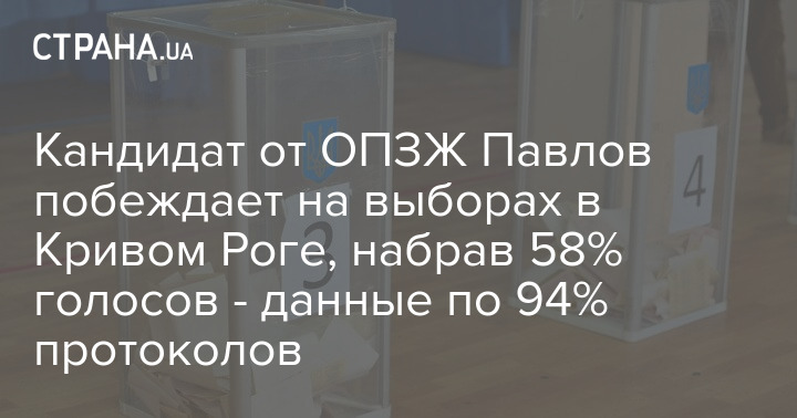 После обработки 94% протоколов во втором туре выборов мэра Кривого Рога кандидат от ОПЗЖ Константин Павлов набрал более чем 58% голосов. При этом кандидат от "Слуги народа" Дмитрий Шевчик набрал 41,6%.