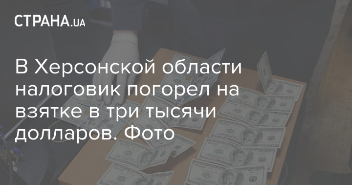 В Херсонской области задержали начальника одного из отделов Налоговой службы, который требовал взятку в размере 3 000 долларов в обмен на исключение предприятия из "группы риска".