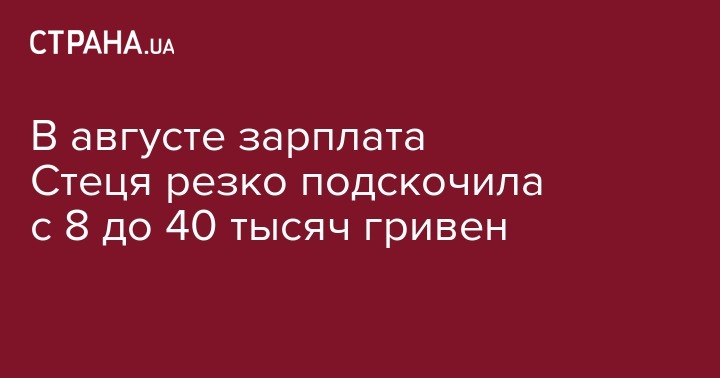 В августе зарплата Стеця резко подскочила с 8 до 40 тысяч гривен