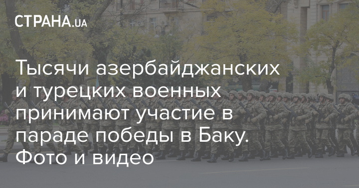 В Баку, на площади Азадлыг, проходит парад победы, посвященный подписанию соглашения с Арменией и Россией касательно завершения военных действий в Карабахе и передаче части территорий региона Азербайджану. В мероприятии принимают участие тысячи азербайджанских и турецких военных.