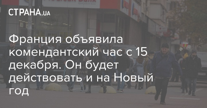 Правительство Франции приняло решение ввести комендантский час в стране с 15 декабря, который будет действовать с 20:00 до 06:00. Новые ограничения будут действовать и в новогоднюю ночь.