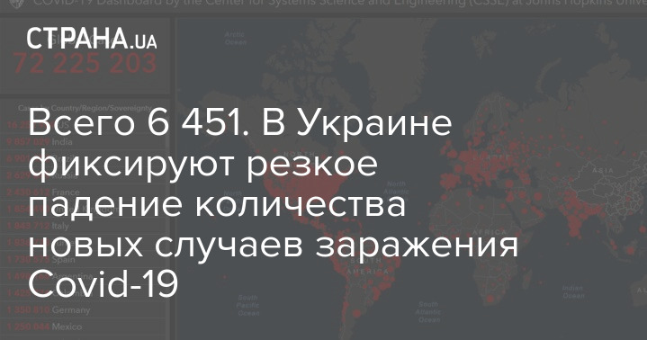 "В Украине резко пошла вниз статистика заражений коронавирусом. За сутки зафиксирован всего 6 451 случай (это в 2,5 раза меньше, чем было на пике в ноябре).