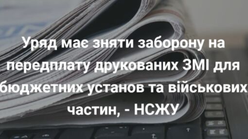 НСЖУ призвал Кабинет Министров безотлагательно внести изменения в свое недавнее решение о запрете на предварительную оплату товаров, работ и услуг, закупаемых за бюджетные средства, которым, по сути была остановлена подписка на периодику Украины.