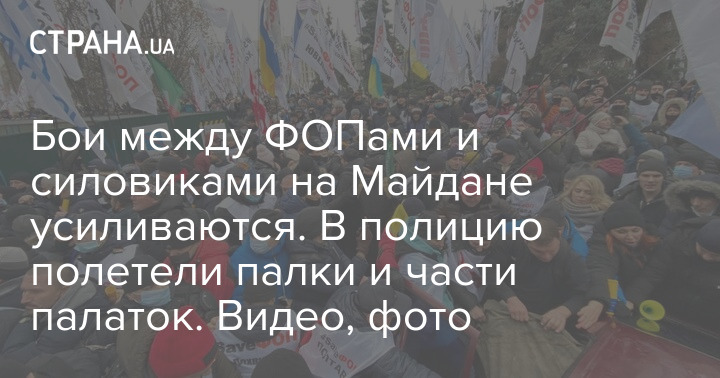 Бои между ФОПами и силовиками на Майдане усиливаются. В полицию полетели палки и части палаток. Видео, фото