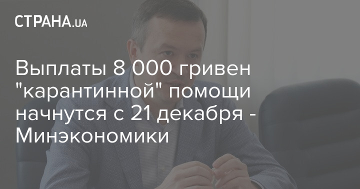 Выплаты в размере 8 000 гривен компенсации ФОПам и наемным работникам в рамках помощи бизнесу в условиях эпидемии Сovid-19 начнутся 21 декабря. Те лица, которые не успеют подать заявление на получение денег до установленных сроков в 2020 году, получат их в 2021 году.