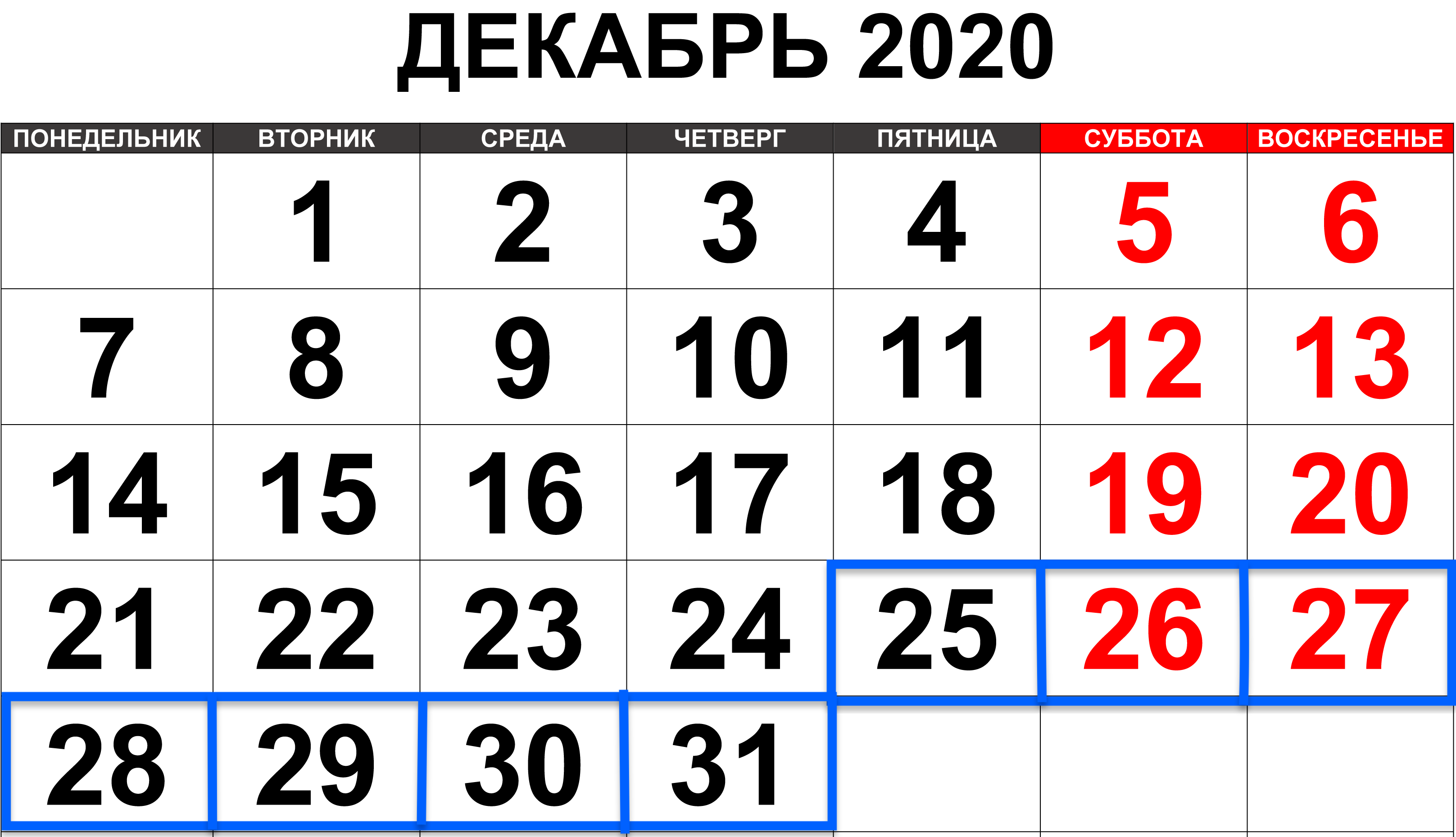 Отдельно мы опубликовали ключевые даты новогодних праздников 2020 - 2021: