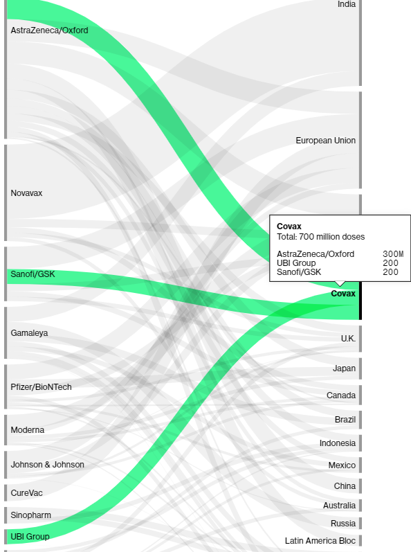 На днях издание Bloomberg опубликовало данные по контрактам, которые заключила каждая страны, чтобы вакцинировать свое население (речь о тех контрактах, которые агентство нашло в публичной сфере).