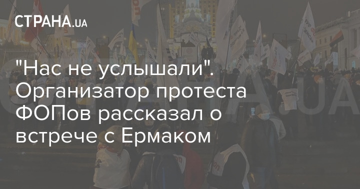 "Я недоволен состоявшейся встречей. На этом совещании еще был замминистра экономики, три каких-то эксперта, и два ФОПа, один из которых я, а второй уже не знал как вылизать пятую точку господину Ермаку. Мы не рассматривали конкретные вопросы, по сути, нам только сообщили о создании координационного совета по вопросам малого и среднего бизнеса при президенте Украины", - сказал организатор акции протеста.