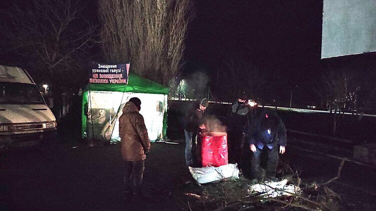 Бастующие горняки урановых шахт перешли к круглосуточному перекрытию дорог в Кировоградской области