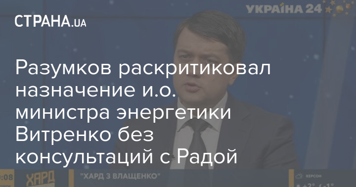 Председатель Верховной Рады Дмитрий Разумков раскритиковал действия правительства, которое без консультаций в парламенте назначило Юрия Витренко на должность исполняющего обязанности министра энергетики.