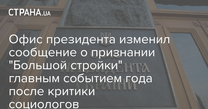 Сообщение Офиса президента о том, что 93% украинцев считают программу "Большая стройка" главным событием года, было исправлено после критики социологов, на исследование которых ссылалось представительство главы государства.