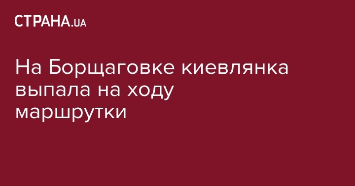 В Киеве на Борщаговке около 11:00 в пятницу, 9 сентября, пассажирка маршрутки во время движения выпала на проезжую часть и чуть не угодила под колеса другого автомобиля, который едва успел остановиться. Об этом сообщает Dtp.kiev.ua.