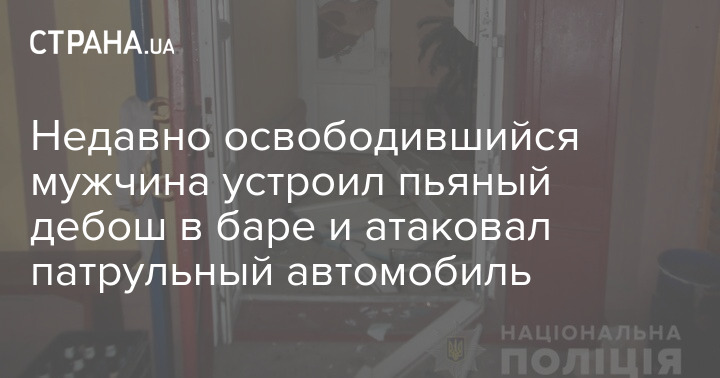 Хулиган повредил полицейскую машину и разрушил бар. Скриншот https://mk.npu.gov.ua/news/novini/za-napad-na-policzejskix-agresivnij-vidviduvach-baru-v-ochakivskomu-rajoni-nestime-kriminalnu-vidpovidalnist/