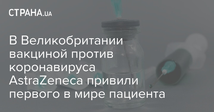 В Великобритании вакциной против коронавируса AstraZeneca привили первого в мире пациента