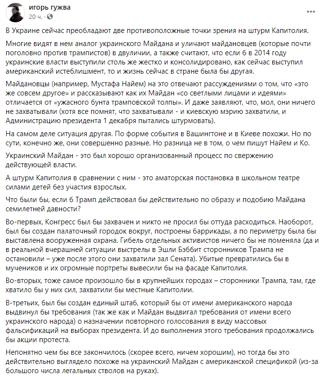 Штурм Капитолия в сравнении с Майданом – это аматорская постановка в школьном театре силами детей без участия взрослых.
