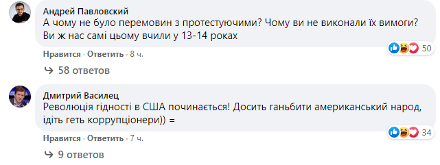 В Украине обсуждения этого феномена пошли двумя путями. Промайдановский лагерь и примкнувший к нему Зеленский поддержали разгон протестов. Другие комментаторы заявили, что это нелогично – у себя культивировать "революции", а в Штатах восхвалять их подавление.