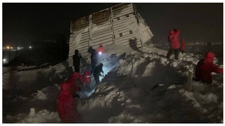 В соцсетях публикуют кадры с места схода лавины в Норильске в районе горнолыжного комплекса.