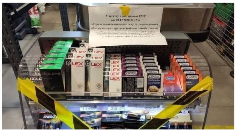 В украинских супермаркетах презервативы отнесли к товарам, запрещённым к продаже в локдаун. Фото