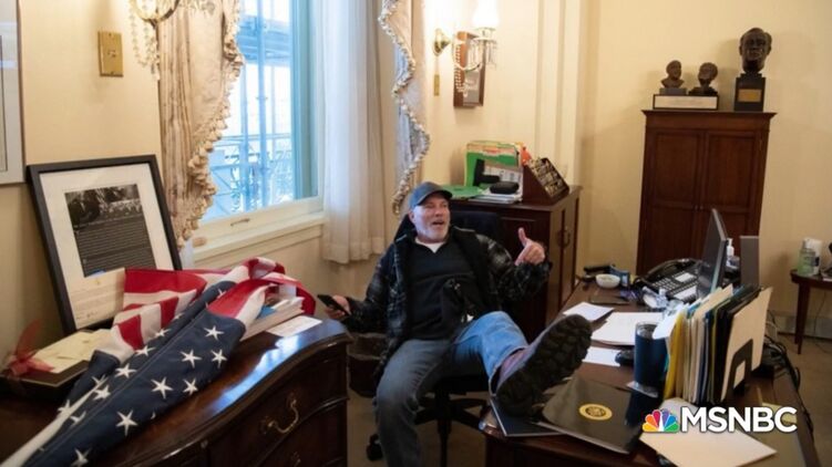 Американская полиция задержала мужчину, который во время беспорядков в Капитолии пробрался в кабинет спикера Палаты представителей Конгресса Нэнси Пелоси и уселся в ее кресло, положив ноги на рабочий стол политика.