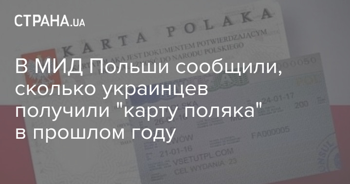 В МИД Польши заявили, что в 2020 году 7094 гражданина Украины получили документ, подтверждающий принадлежность к польскому народу.