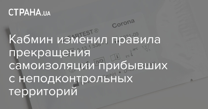 Кабинет министров принял постановление об изменении правил прекращения самоизоляции тех, кто прибыл с неподконтрольных Киеву территорий Донецкой, Луганской областей и из Крыма.