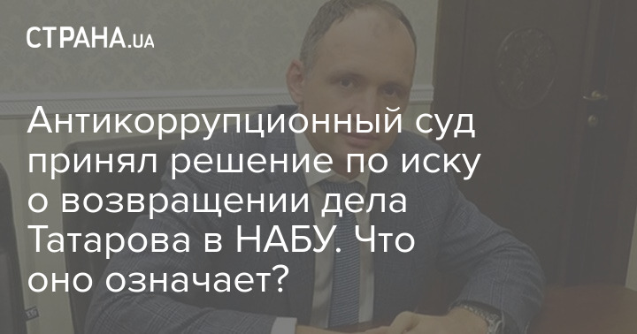 Высший антикоррупционный суд Украины принял решение обязать Офис генпрокурора рассмотреть ходатайство НАБУ и САП о возвращении им дела Олега Татарова, которое ранее по решению суда было передано в СБУ.