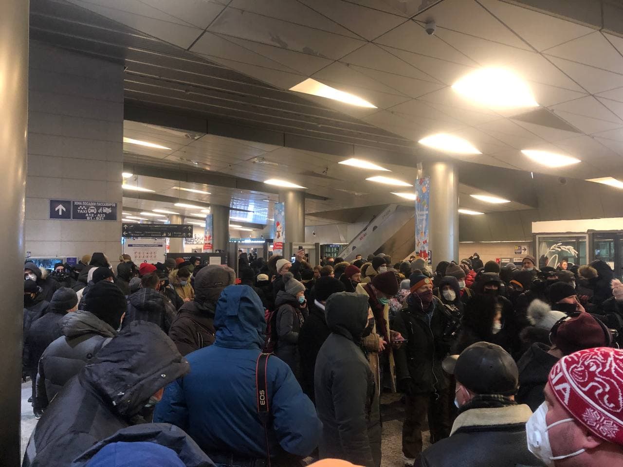 18:35  Изгнанные из аэропорта журналисты переместились в здание аэроэкспресса. Но некоторые остались и на улице.