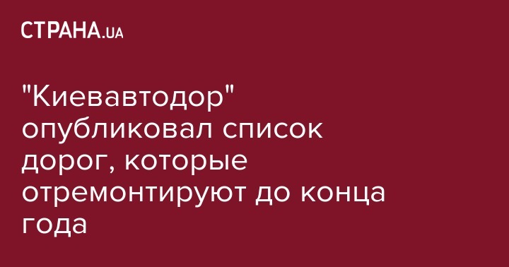 "Киевавтодор" опубликовал список дорог, которые отремонтируют до конца года