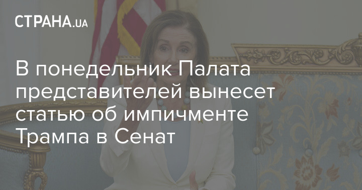 Нэнси Пелоси, спикер Палаты представителей Конгресса США, 13 января проголосовавшей за импичмент Дональда Трампа, передаст документы для импичмента в Сенат в понедельник.