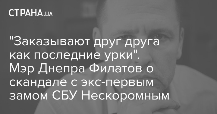 Мэр Днепра Борис Филатов заявил, что ситуация с бывшим первым заместителем главы СБУ Дмитрием Нескоромным, которого вчера пытались задержать по подозрению в подготовке убийстве главы службы внутренней безопасности СБУ генерала Наумова, свидетельствует о деградации украинской спецслужбы.